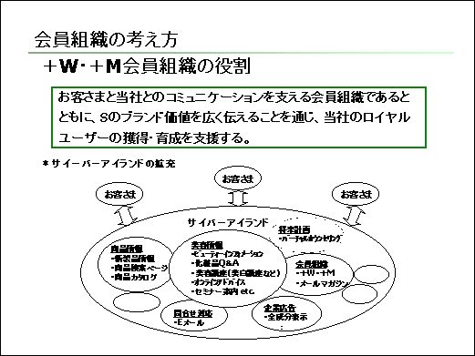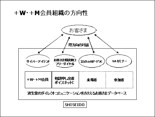またこの会員組織は資生堂のデータベースマーケティングの根幹と位置付け、会員の拡充に従いブランド別や地域別のミクロなマーケティングに具体化してゆく計画です。この時は個人用ホームページまでできているでしょう。