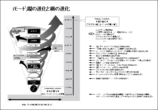 この「iモード発展戦略」図は、e-mail、Homepage、Groupware、Java、そしてIMT-2000(Foma)へと、あたかも技術先行で市場を創っていくように表現していますが、実際はそう単純ではありません。技術が次世代に移ろうとも、お客さまには前の世代のサービスが常に見えるようにしておかないと、一気に新しい技術やサービスには飛びつかないと認識しております。お客にとってベースになるものができて慣れ親しんで、その上で付加価値がついたものを納得して徐々に取り入れていくという過程が重要です。一般のお客さまというのは保守的なものです。これはコンテンツを作る側にとっても言えることです。