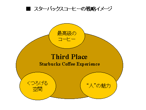 これらを戦略に落とし込むとすると、スターバックスコーヒーの戦略は下図のような3つの項目に整理されると思います。