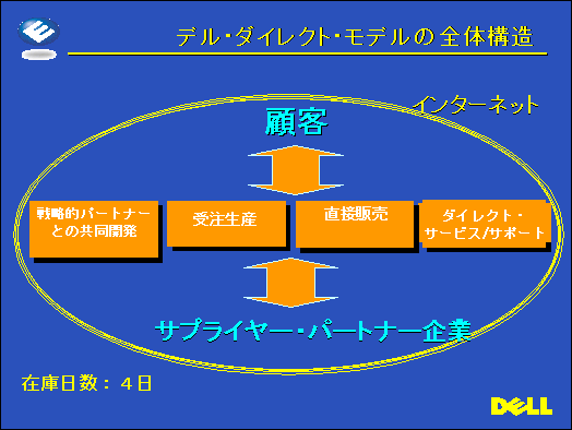 このようにして生み出されるコスト(利益)は、全て製品価格に反映させるというのがデルの基本方針です。単にマーケティングだけからの利益ではなく、オペレーション面からも原資を得ることが徹底されています。インターネットの威力をあらためて認識せざるを得ません。